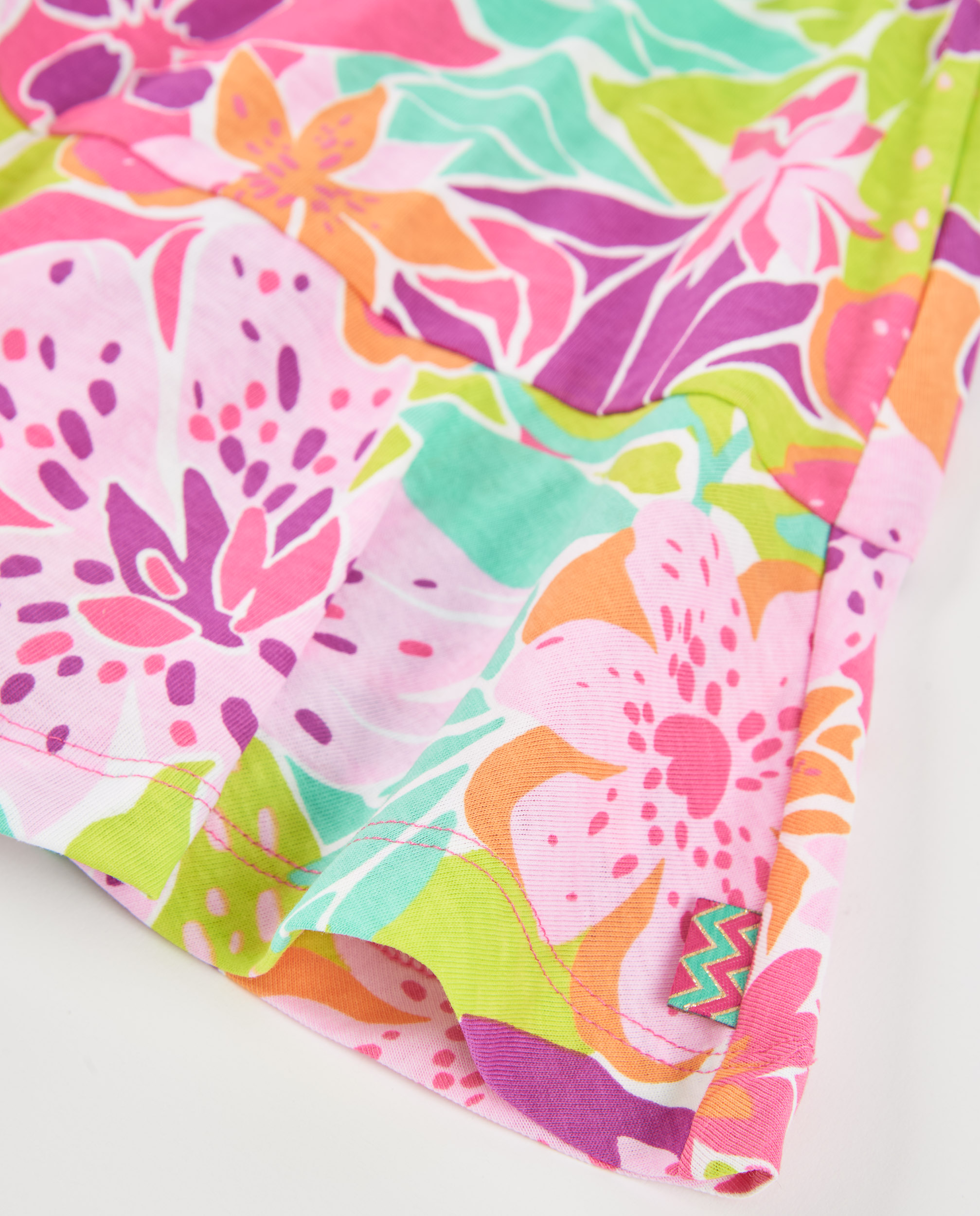 Χαρίστε στο μικρό σας κορίτσι μια εμφάνιση γεμάτη χρώμα και στυλ! Αυτή η παιδική φούστα συνδυάζει την άνεση της καθημερινής κίνησης με ένα εντυπωσιακό, τροπικό φλοράλ σχέδιο που μαγνητίζει τα βλέμματα.