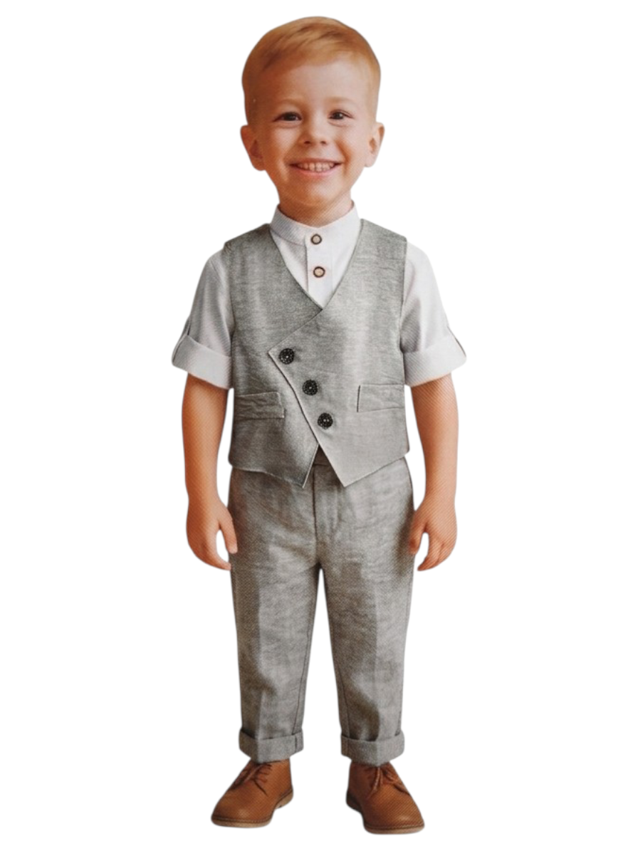 Παιδικό Επίσημο Σετ 3 Τεμαχίων: Γιλέκο, Πουκάμισο & Παντελόνι – Γκρι Μελανζέ