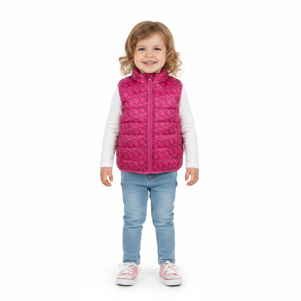 Λεπτό αμάνικο φθινοπωρινό/ανοιξιάτικο μπουφάν για κορίτσια σε φούξια χρώμα με σχέδια καρδιές.