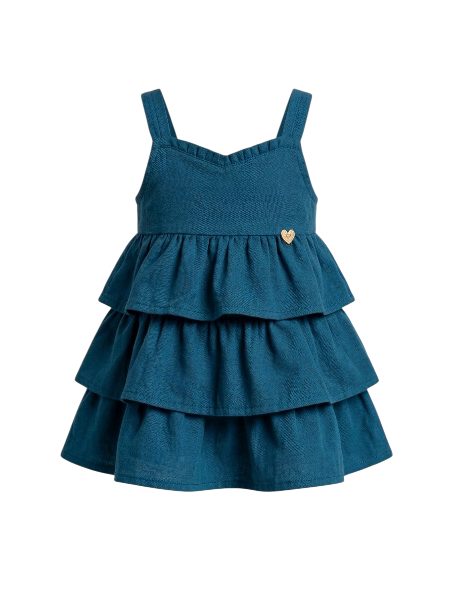 Χαρίστε στο μικρό σας κορίτσι μια εμφάνιση γεμάτη στυλ και άνεση με αυτό το υπέροχο αμάνικο φόρεμα. Σχεδιασμένο για να προσφέρει ελευθερία κινήσεων, είναι η ιδανική επιλογή τόσο για τις καθημερινές βόλτες όσο και για πιο ιδιαίτερες περιστάσεις.