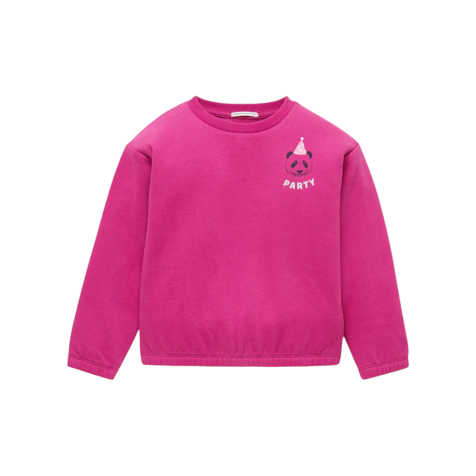 Παιδική μπλούζα φούτερ σε φούξια χρώμα και τύπωμα panta Party στο πλάι.