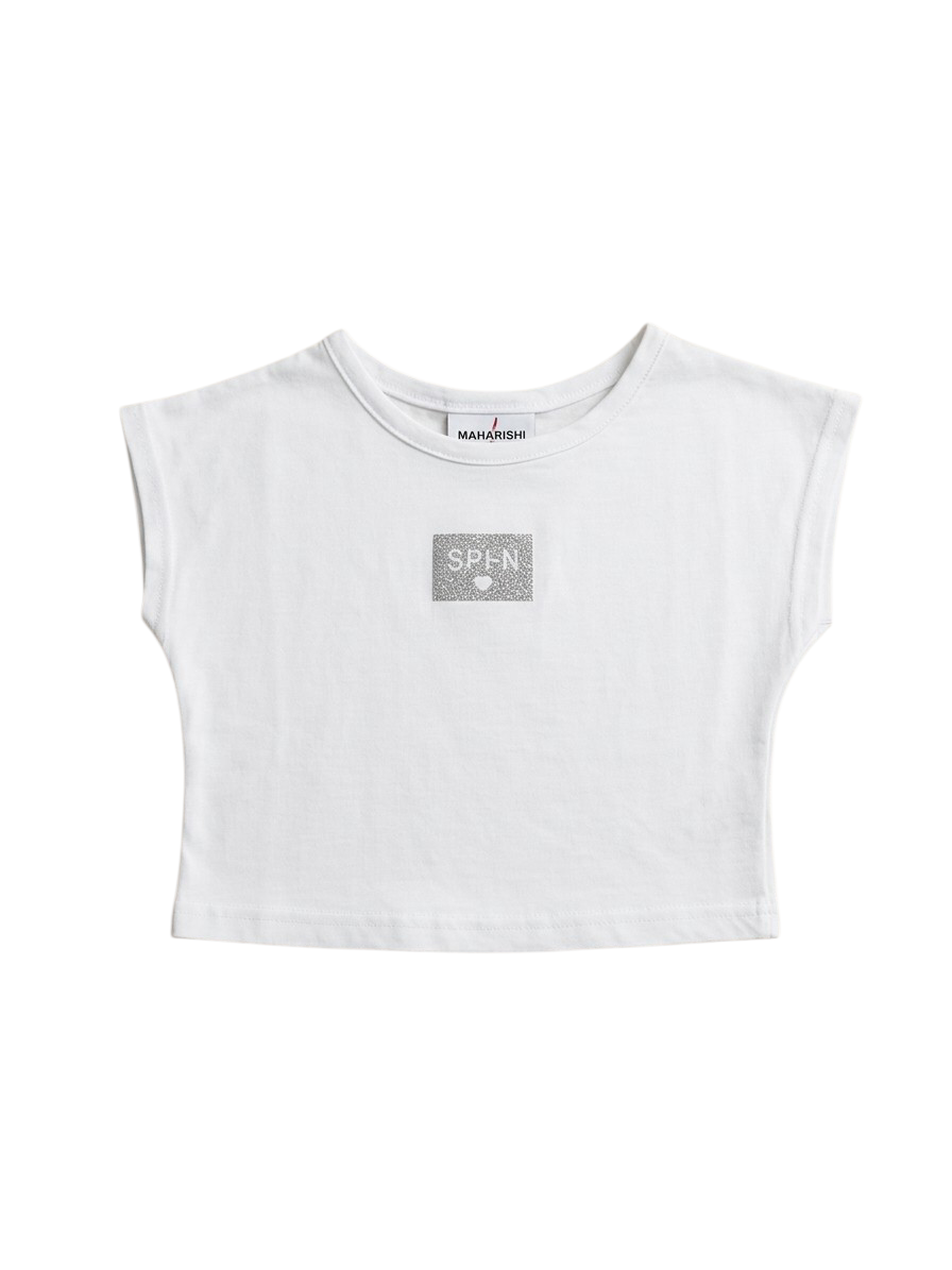Παιδικό Cropped T-shirt με Glitter Λογότυπο – Λευκό