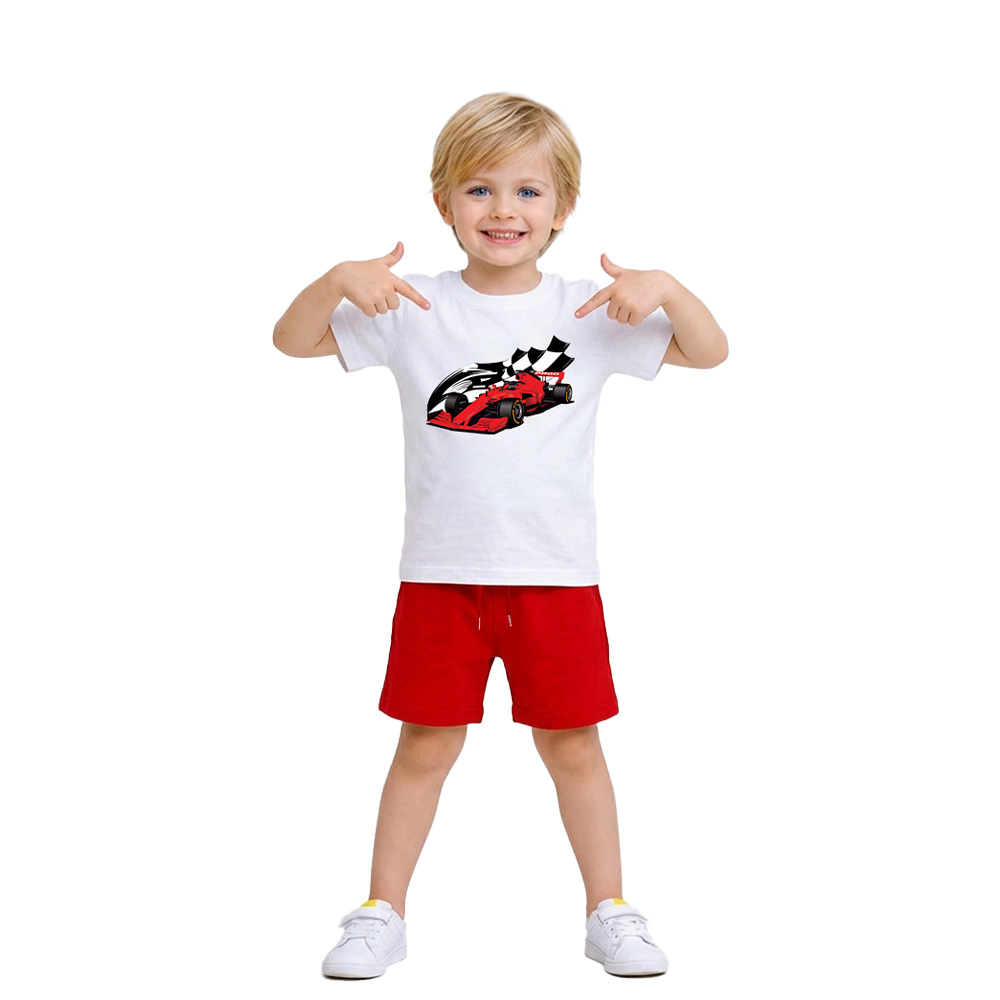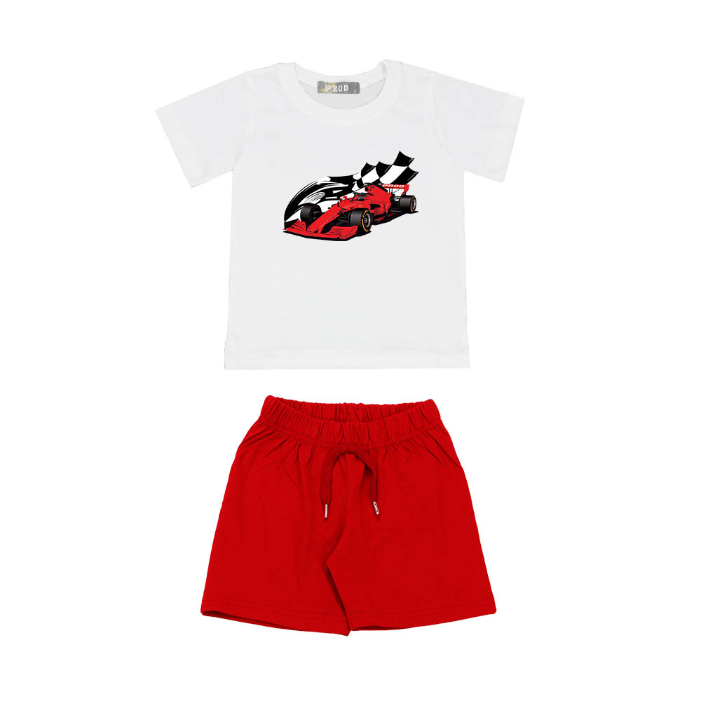 Μπλούζα παιδική με ψηφιακό τύπωμα φόρμουλα & μονόχρωμη βερμούδα με κορδόνι.