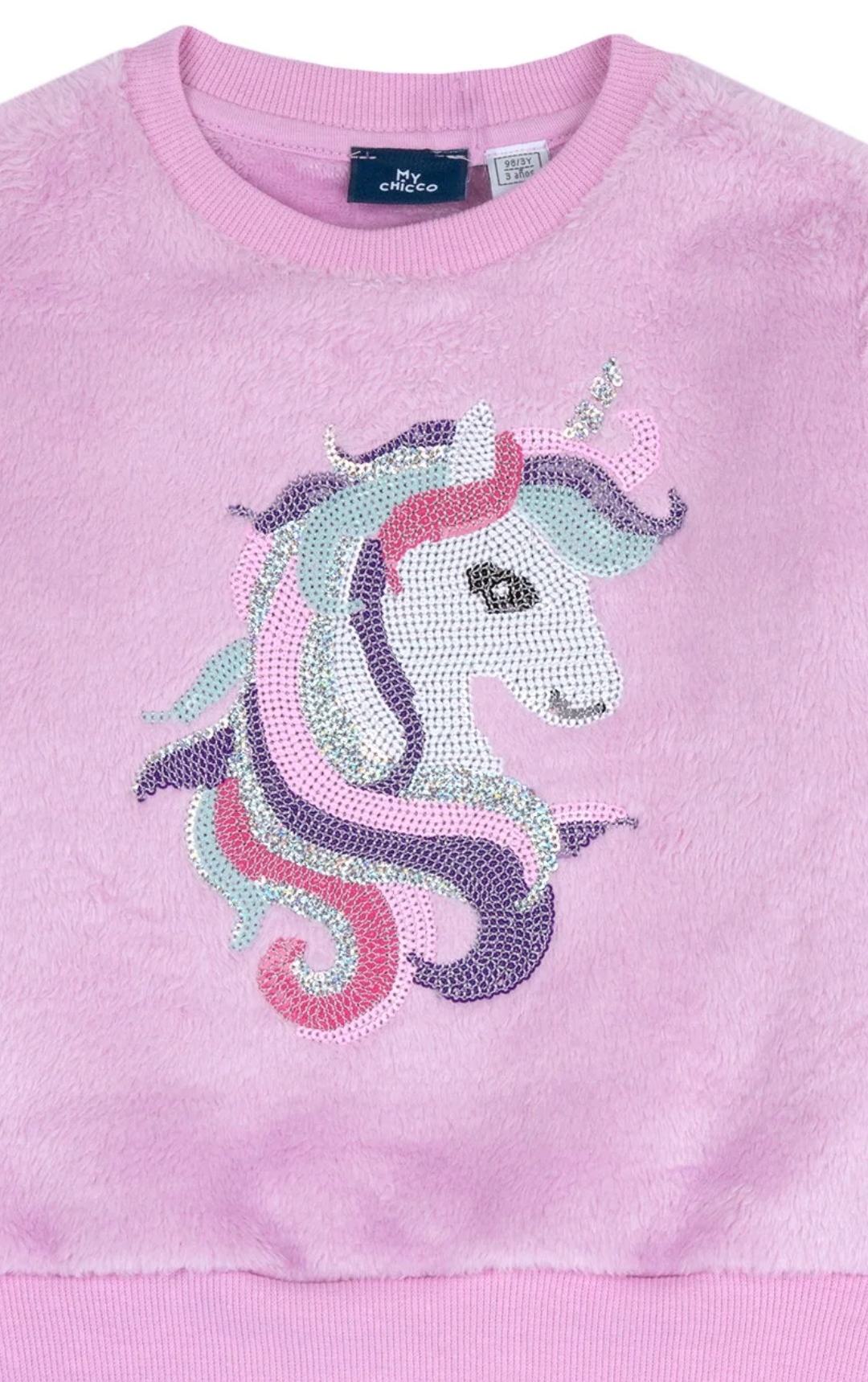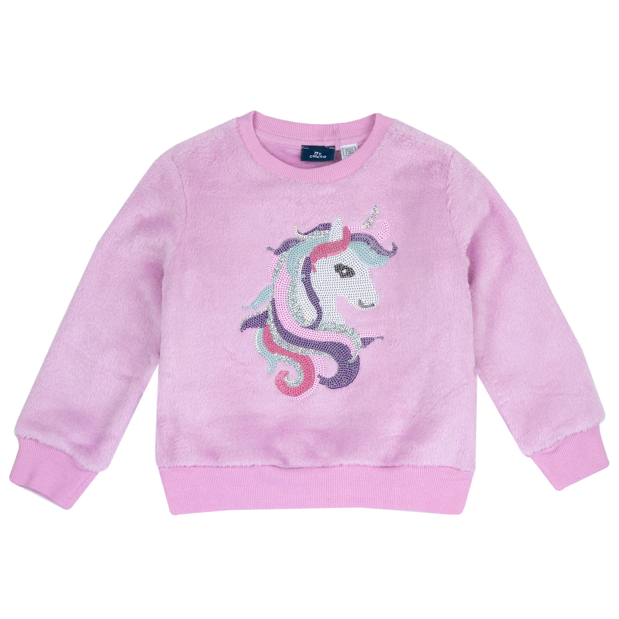 Φούτερ της Chicco με γούνινη επένδυση εσωτερικά και εξωτερικά. Έχει τύπωμα unicorn μπροστά.